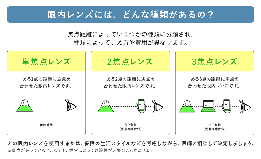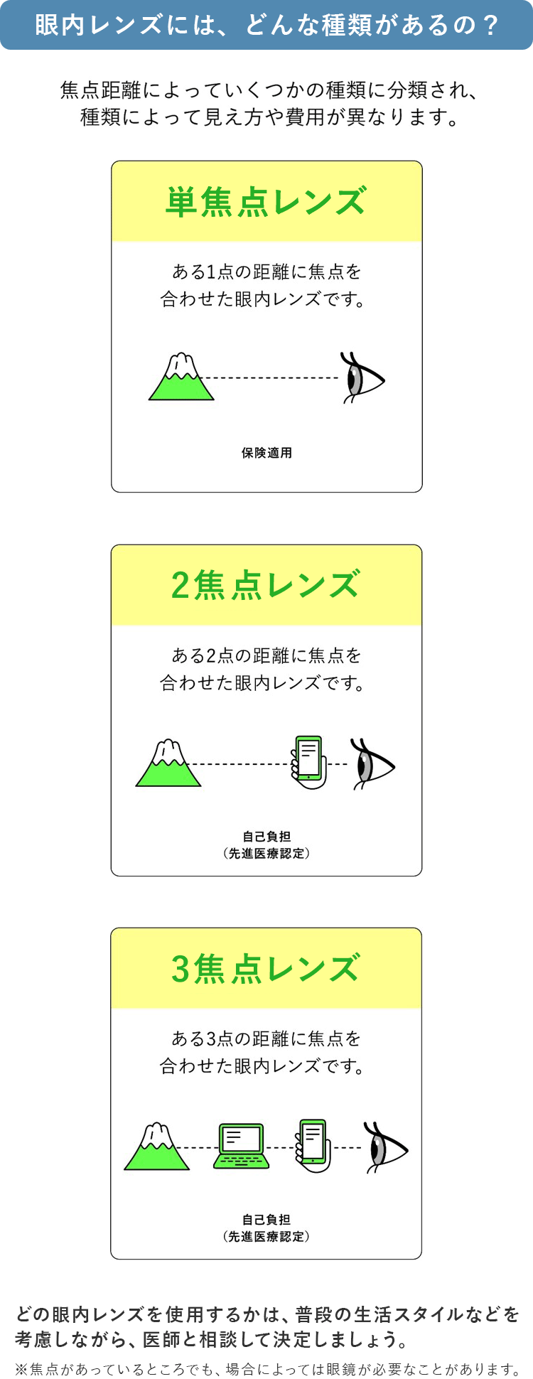 白内障手術の際に使用される眼内レンズには大きく2種類があります。
